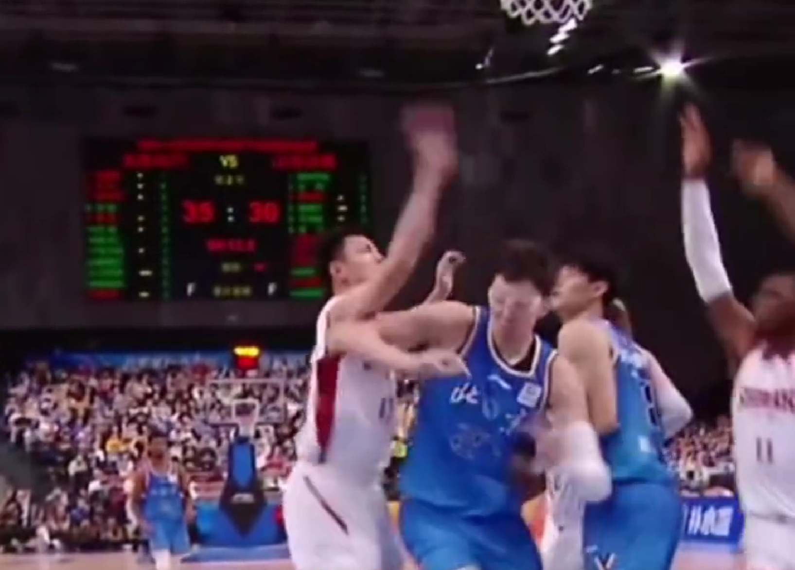 第三节末段,周琦和山西队球员焦海龙吵了起来,原来周琦 在内线持球进攻时被焦海龙击中了头部,